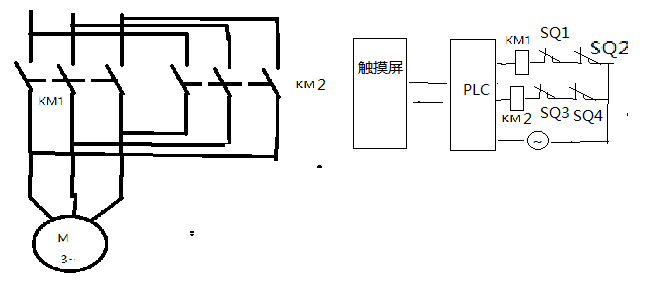 既然是PLC控制KM1和KM2,PLC中無輸入X信號,行程開關的動合信號如何加入到PLC中?用觸摸屏的信號無法代替實際的行程開關,讓電機自動往返的?