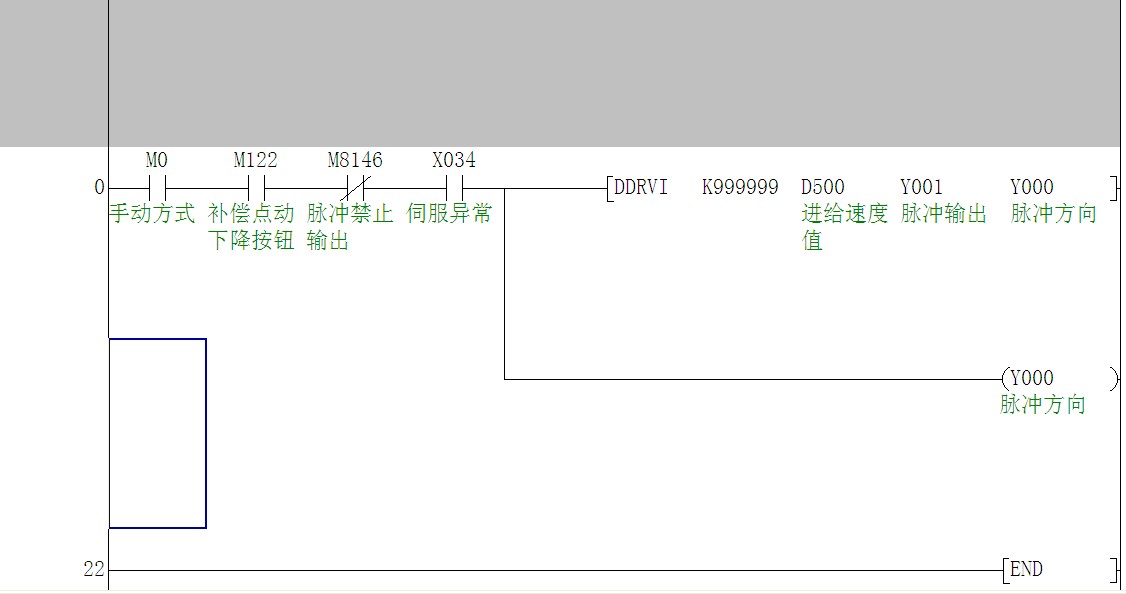 糾正一下,DDRVA和DDRVI 前面觸點條件斷開后,都是減速停止! 方向不用單獨置ON,DDRVI 的脈沖數設為負數就反轉了!