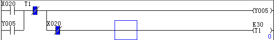 第一個程序只有當X20先ON后,再次OFF時才能延時斷開Y5