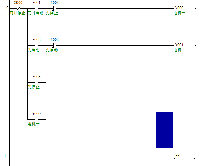 通常我們對題目的理解也就是:兩臺電動機(jī)首先啟動A,A啟動以后才能再啟動B。先停止B,才能停止A。然后還要實(shí)現(xiàn)的功能就是按一個按鈕,
