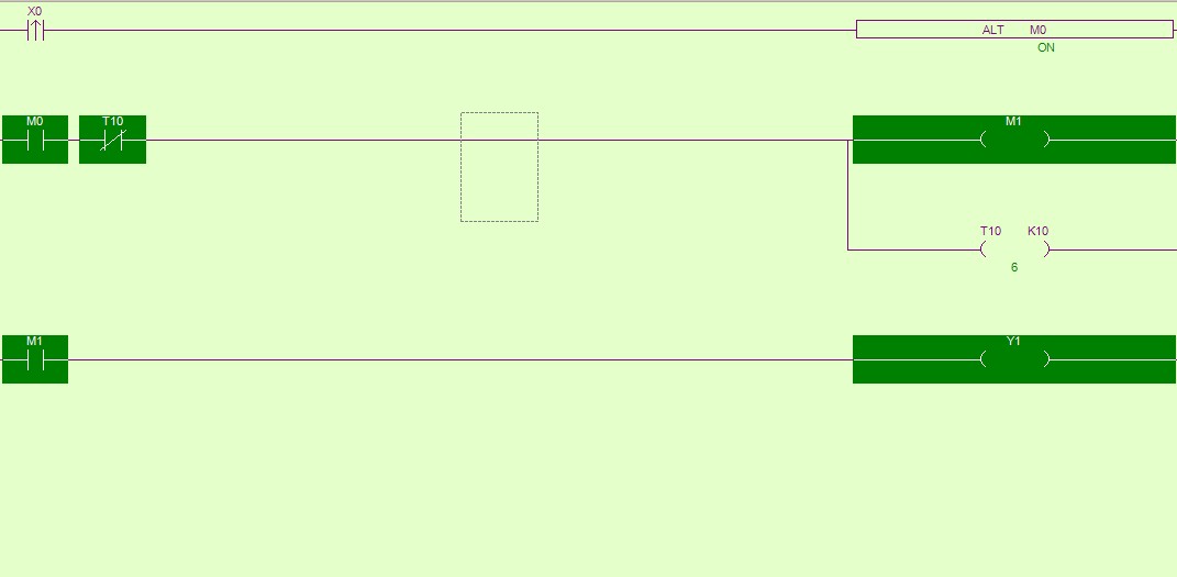 版主已經回答了,Y1斷開1個掃描時間之后就恢復了。要想間歇性通斷,通常的編程是用兩個計數器來完成。 |
