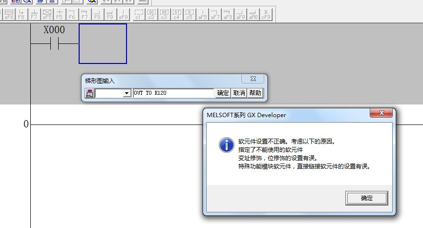 就是在編寫梯形圖時,輸入常開觸點后,再想輸入個計時器“T0 K120",就彈出這個框了。