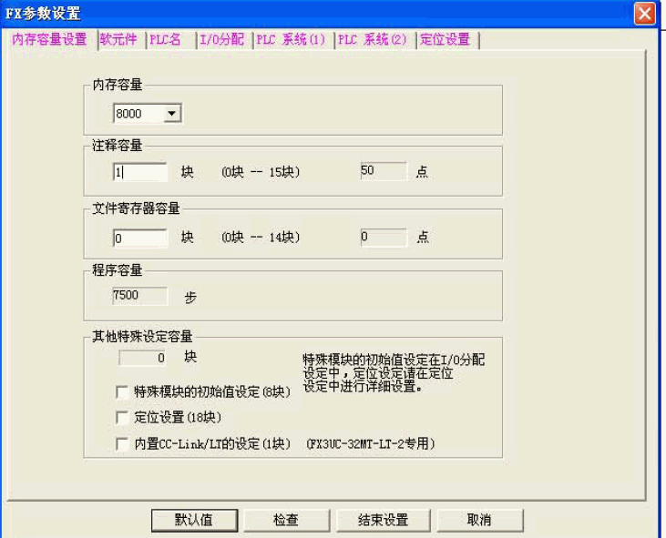 三菱FX3UPLC存儲為64K步,在參數里面設置!