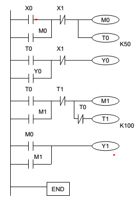 啟動(dòng):X0   停止:x1   一號(hào)電機(jī):yo    二號(hào)電機(jī):y1