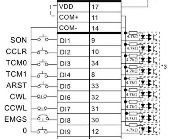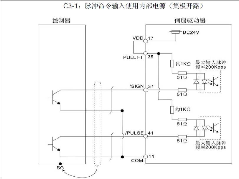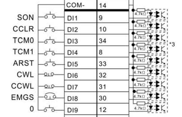 我現在將COM-(14)腳接外部電源+24V。9腳、30腳、31腳、32腳接外部電源0V。在脈沖輸入過程中可以正常運行,但有時候會驅動器跳出AL.015報警,在此過程中如果不停止伺服則仍然可以正常運行,一旦停止脈沖輸出要想從新啟動就無法工作,斷電等待一段時候后又可正常工作!