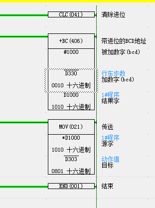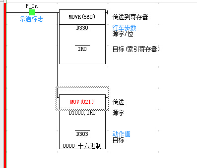 我想隨著運行步D330增加(從0到100),將D1000到D1100中的數據讀取,傳送到D303中,請問該怎么寫,