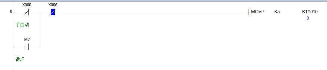 X0置位后運行后續指令,MOVP只在條件滿足的第一個掃描周期執行,之后不再執行。除非X0復位后再次閉合。如果不用X0來執行,靠M7執行,那么,M7置1后的第一個掃描周期執行MOVP,之后要使M7復位,M7再次置1才會執行MOVP。