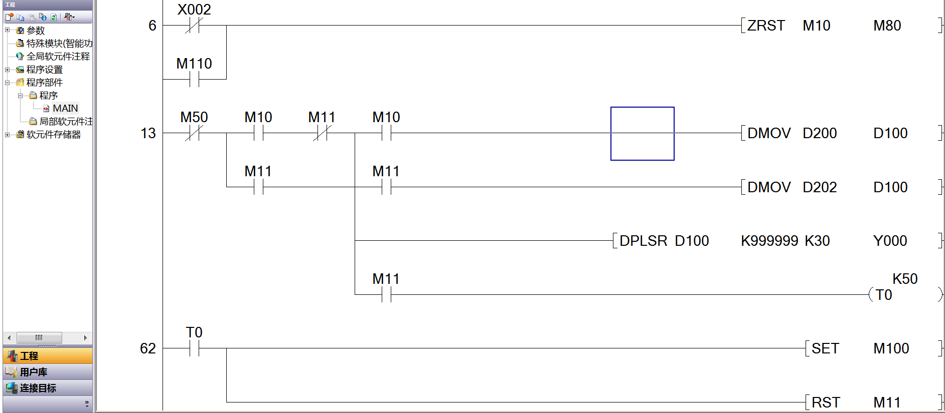其中 K100為輸出對最高頻率;【K0為總輸出對脈沖數(shù)】;K10為加減速時間10ms;Y0為脈沖輸出端口;