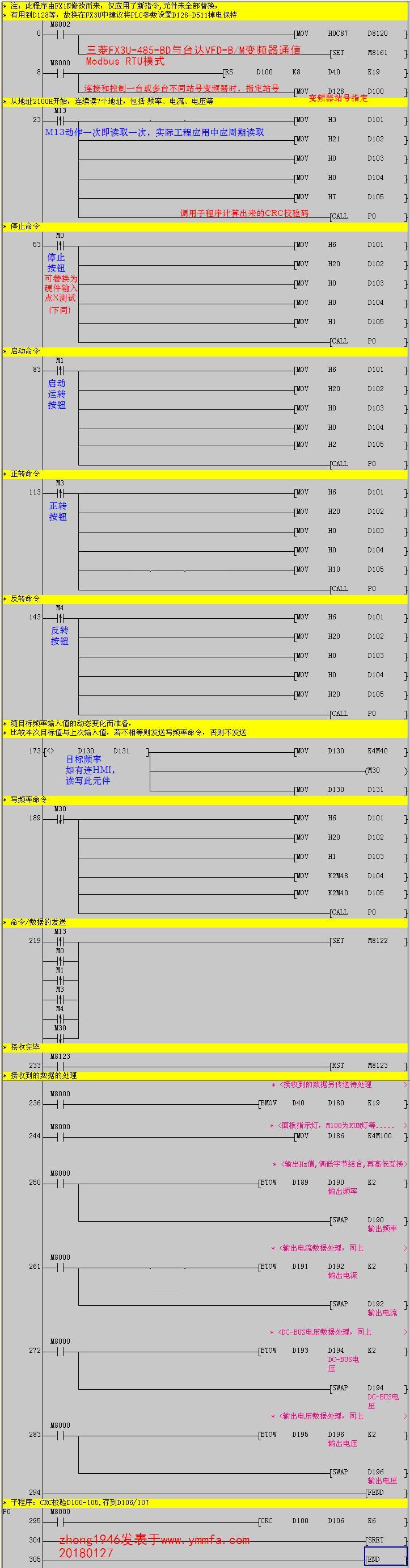 本人新手,現有三菱  FX3U-64MT/ES-A PLC一臺,FX3U-485-BD一個,VDF015B21A臺達變頻器一個。求大神幫助!!!