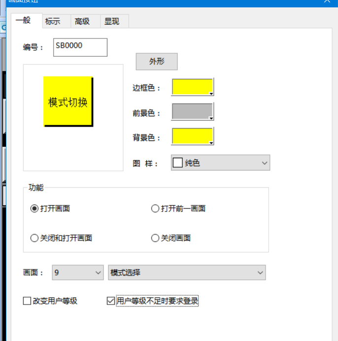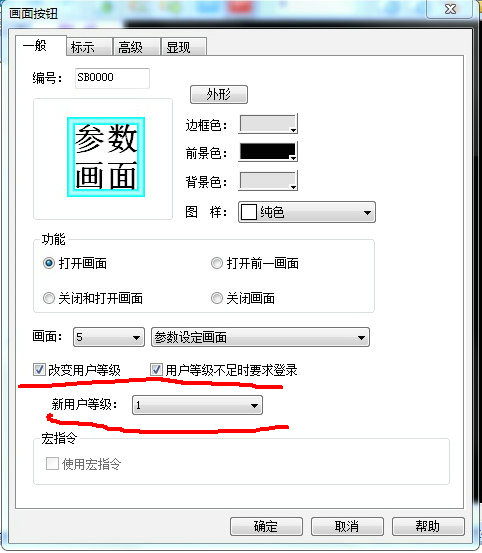 畫面按鈕哪里加個密碼,只有在“一般 '選項里點選用戶等級不足時要求登陸后,可以模擬成功,但實際沒有用,不點選用戶等級不足時,模擬都點不進去,有沒有用過的,指點一下!!!新手第一帖!!