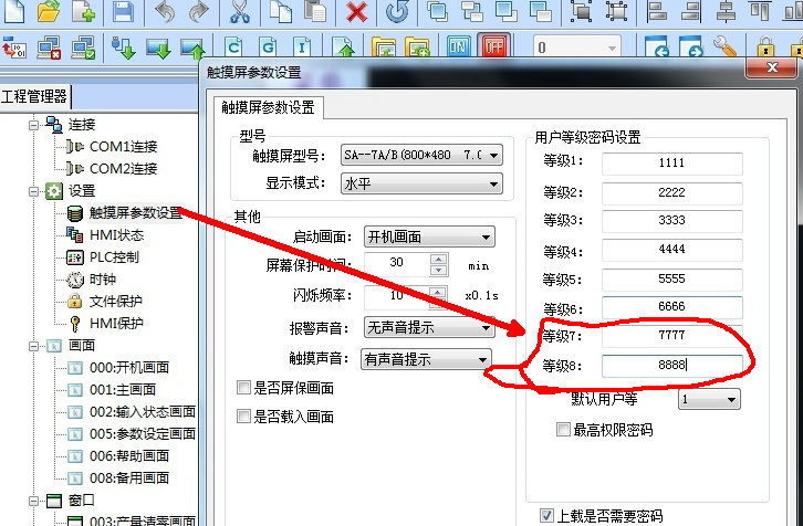 按圖片步驟,設定為等級7以上的密碼才能進入畫面,所以7777和8888才進入。