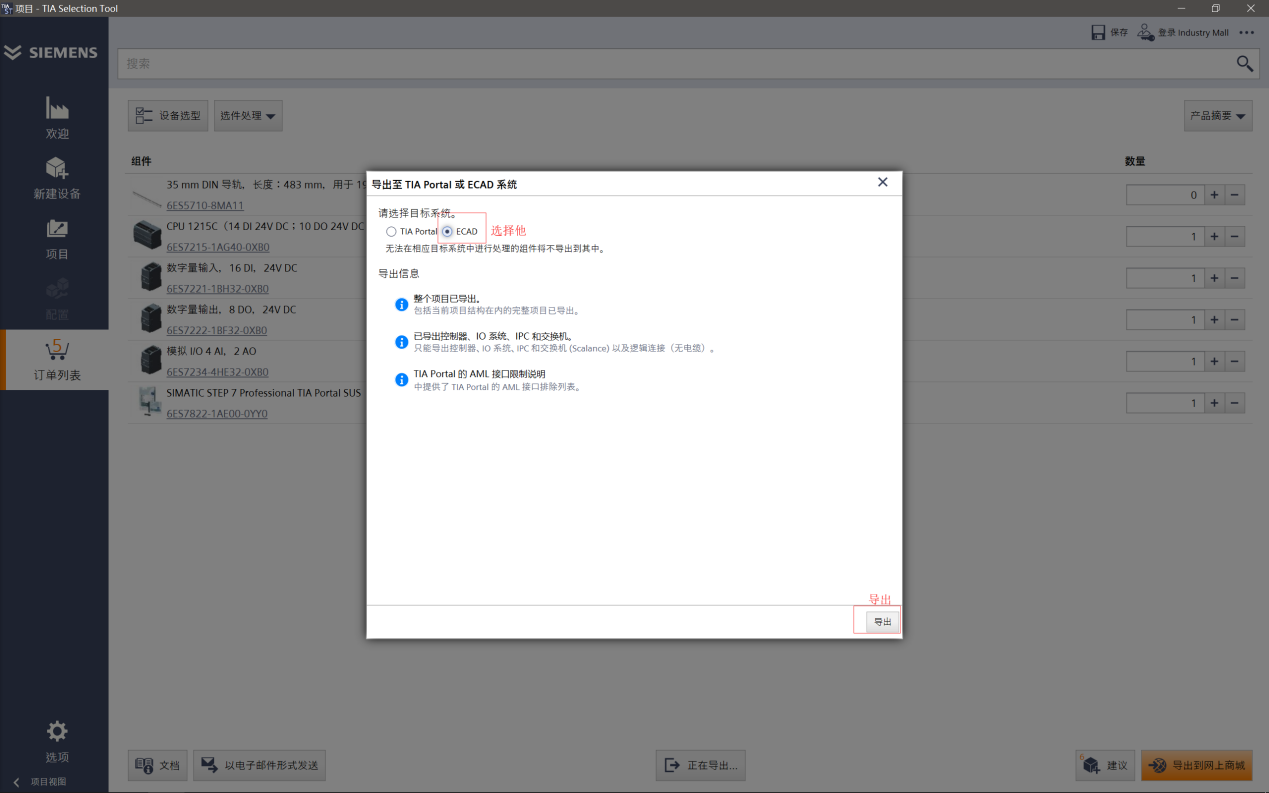 第一步: 在TIA Selection Tool中選型,創建清單,步驟同上,不再贅述