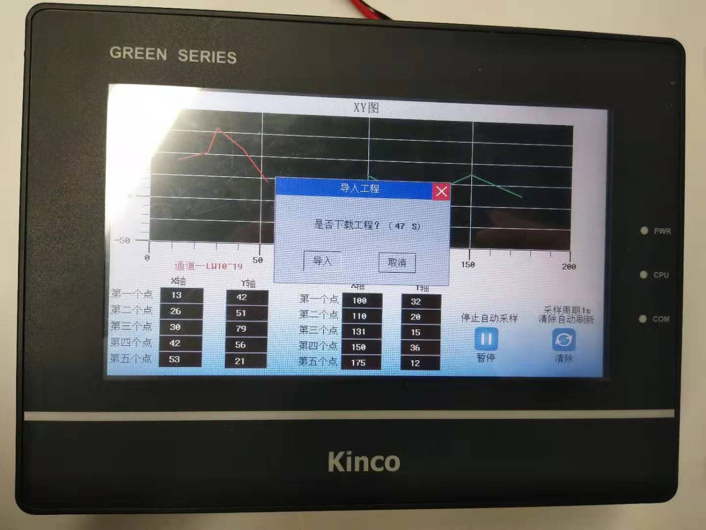 在研究步科官網上放的軟件范例,發現直接將U盤插上,就有提示“是否下載工程”,可以導入或者取消,這個操作好!