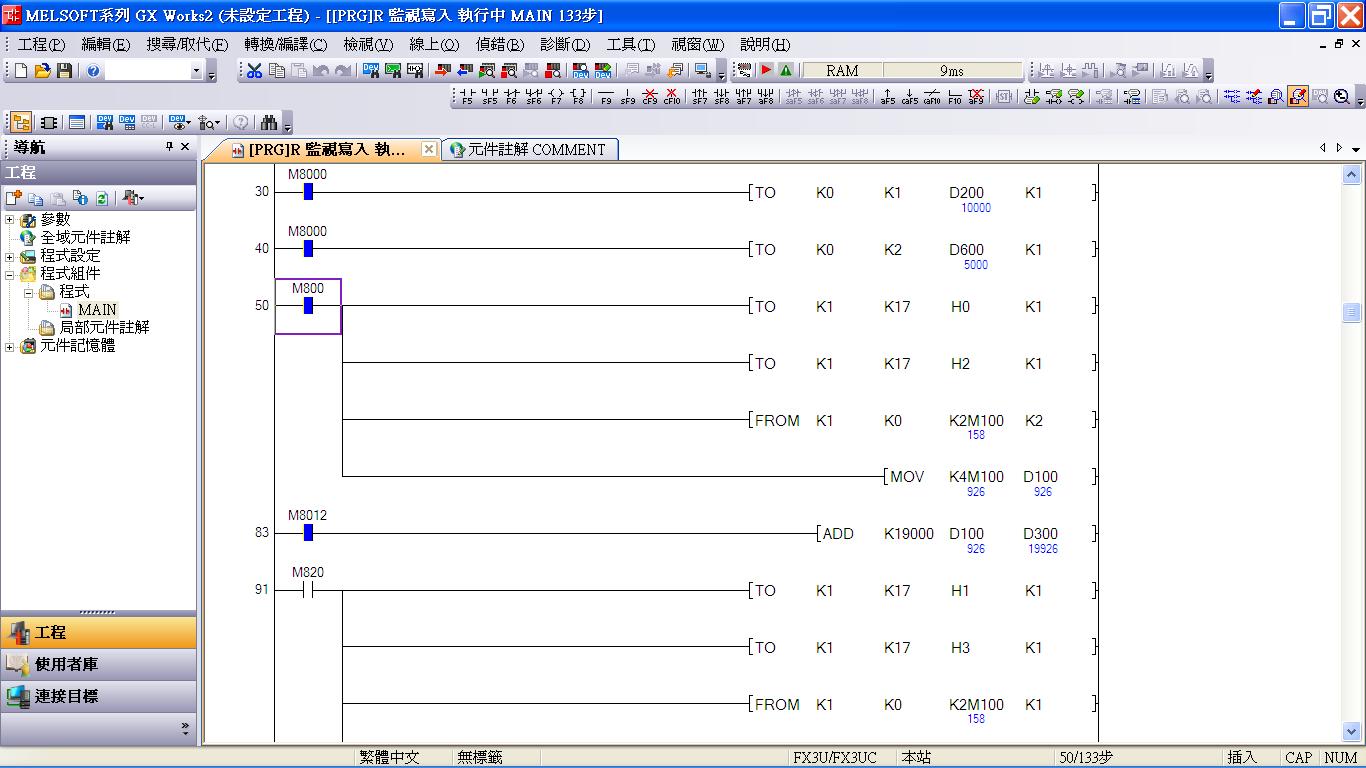 我用fx3u-4da來作輸出電壓給fx2n-ad給ch1 ch2,