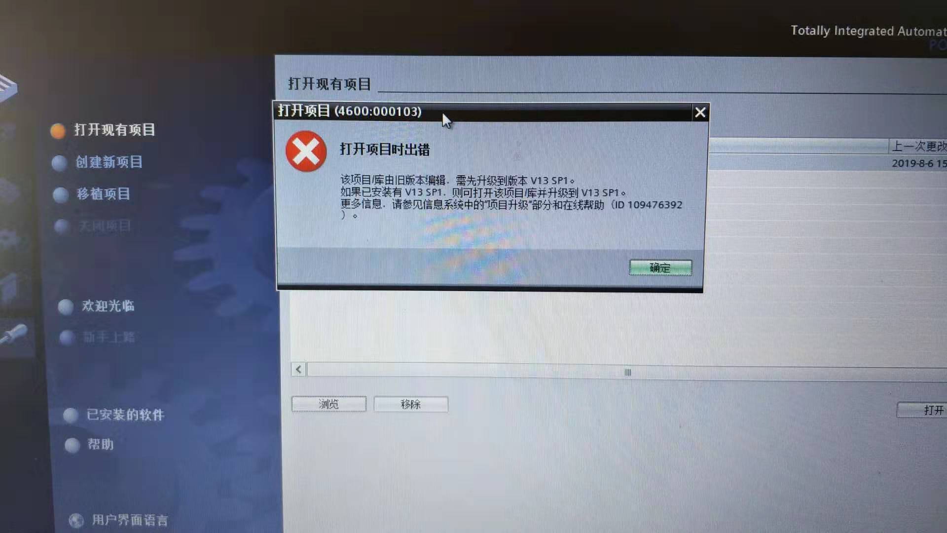 用博途V14打開V13程序時出現(xiàn)“打開項目出錯”對話框