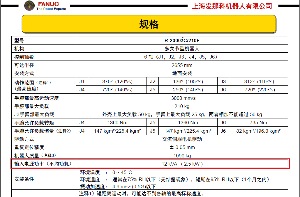 發(fā)那科機器人R-2000iC 165F系列  輸入電源線用多大線徑的合適