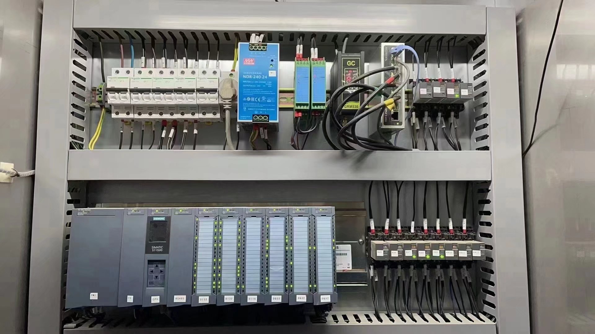 醫藥行業應用,一個遠程模塊連接15臺1500短信報警1400條,變量1477個。實現遠程上下載調試plc,hmi程序,手機APP遠程監控plc。 ![]() |
