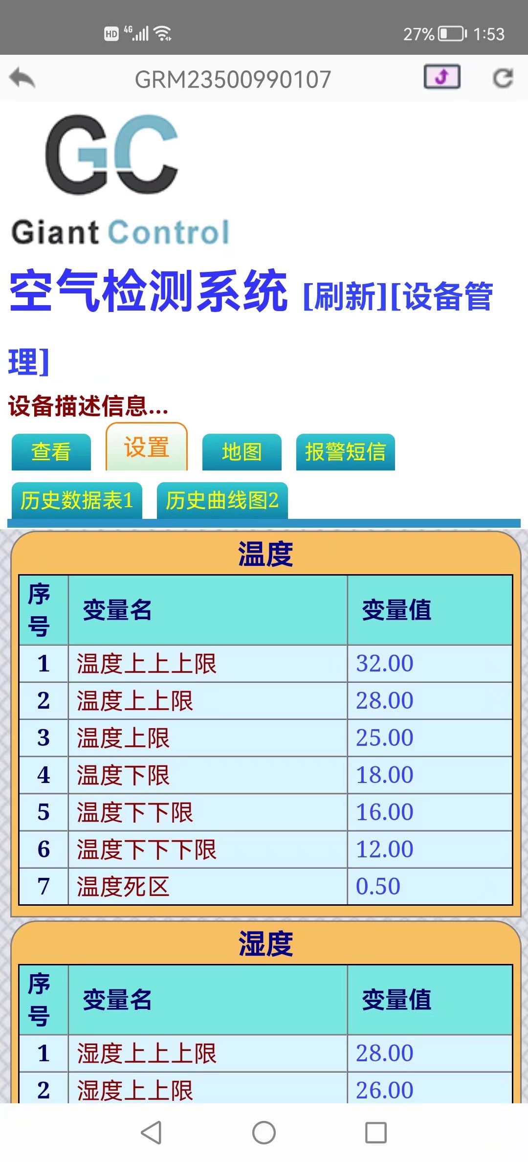 空氣檢測系統加裝遠程模塊,走485 modbus rtu協議進行通訊實現遠程手機APP監控,超標微信告警,數據記錄及曲線查詢 |