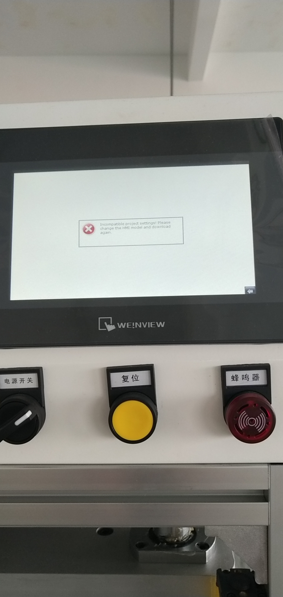 開機報警 Incompatible project setting! Please change the HMI model and download again 屏幕是維綸的TK6071IP的,在客戶那里用了大約半年了,今天開機就出現這個報警,什么原因一般,開始以為通訊線松動了,但翻譯過來說是型號不匹配,可是用了半年了,突然上電出現的這個報警,想不通啊,有大神指導下那!! |