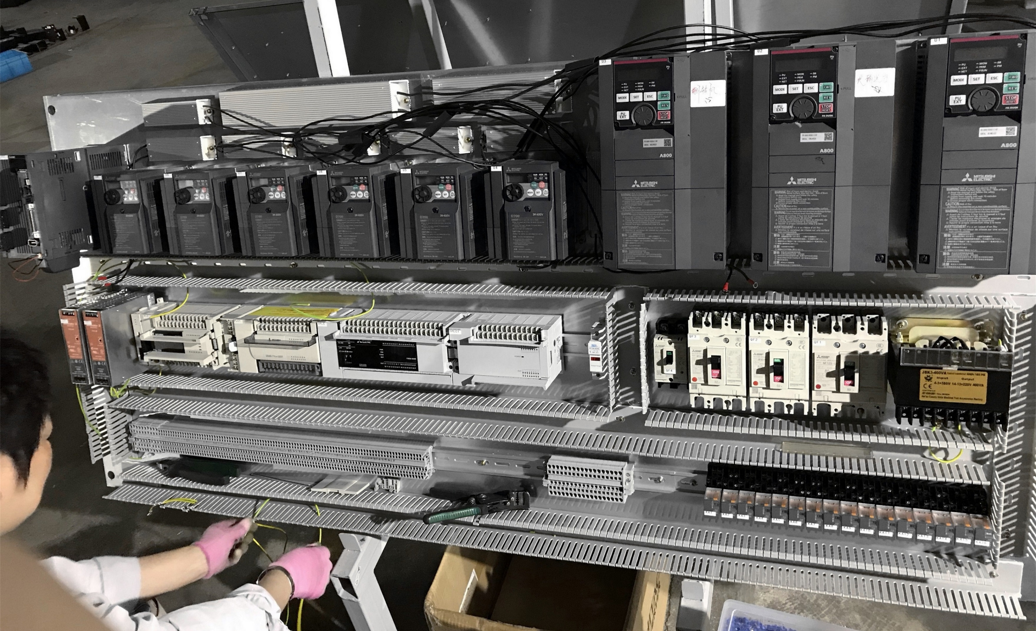 變頻器放上方利于散熱,PLC有點雜啊  看起來FX2系、FX3系和FX5系都在啊