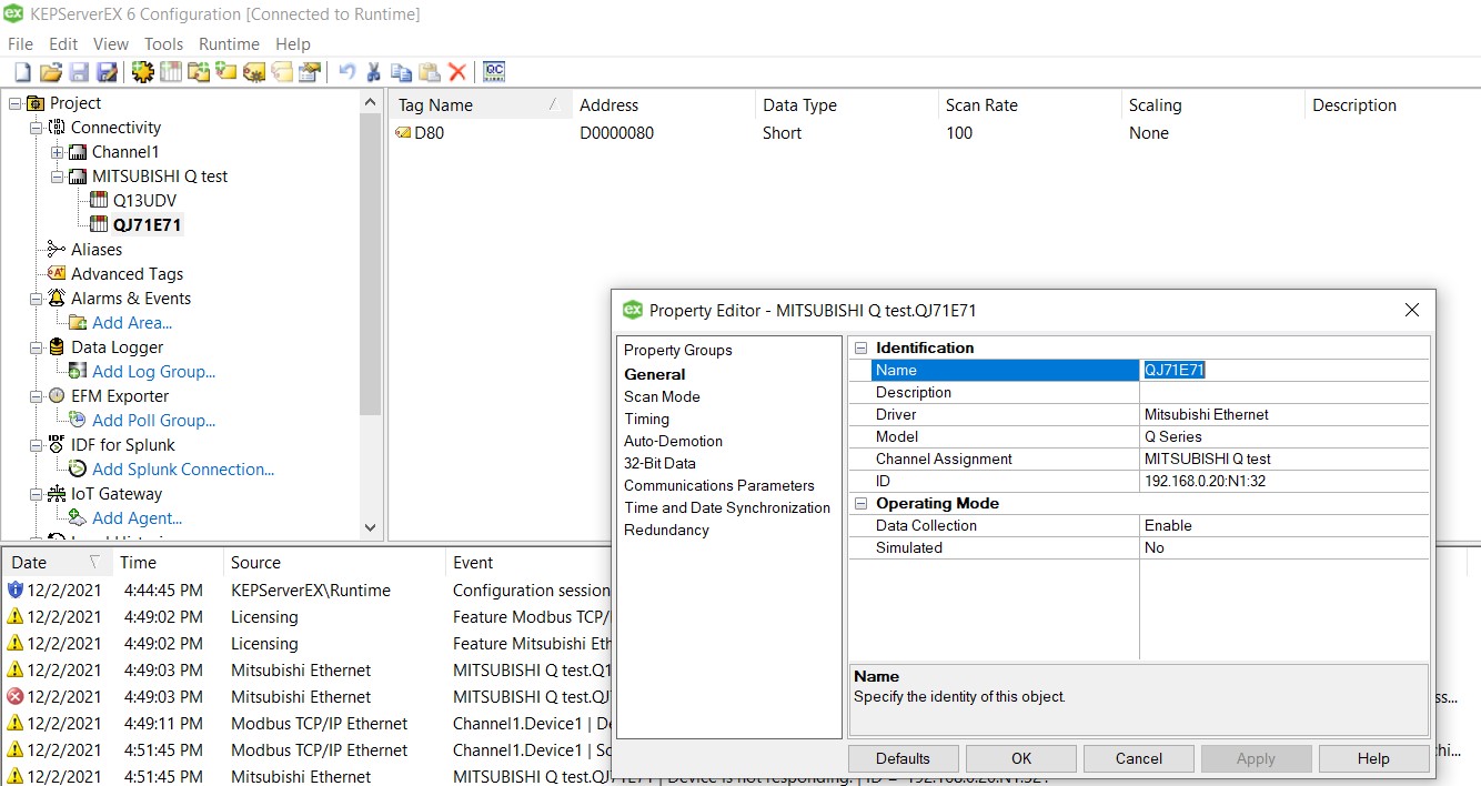 公司需要連MES,裝了一個QJ71E71-100的模塊,想通過MC協議和OPC軟件KEPWARE通訊,搞了好久都通訊不上,請大神指點