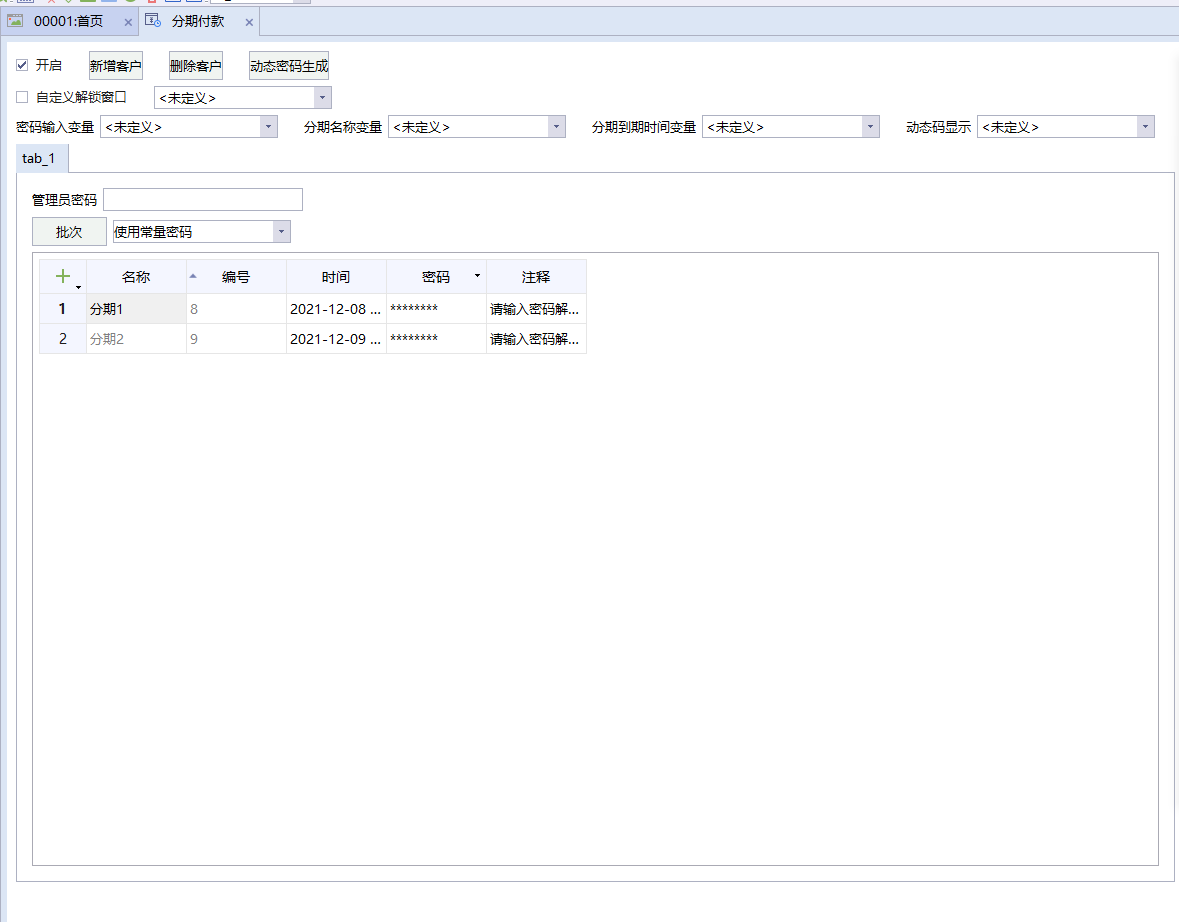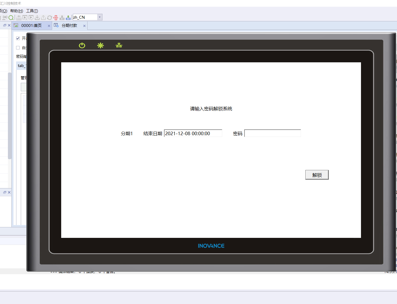 我選擇的使用常量密碼,設(shè)置了一個分期日期,2021-12-08 00:00:00,也勾選了開啟,然后下載進(jìn)入觸摸屏之后,無法彈出解鎖畫面,但是我點擊離線模擬的時候,在模擬畫面里,卻可以彈出解鎖畫面,在實際觸摸屏上就是不行。