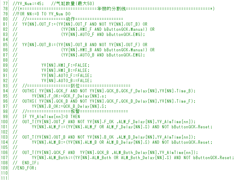 請教各位在項目中是否使用過FB控制多個真空或氣缸?FB輸入只配置M,D,每個氣缸10個M點,10個D,當前規劃1個FB控制10個氣缸,用For循環處理流程。這樣的話,流程用ST寫的話,里面的不同氣缸的延時是怎么寫,都是用D*sm412么? |