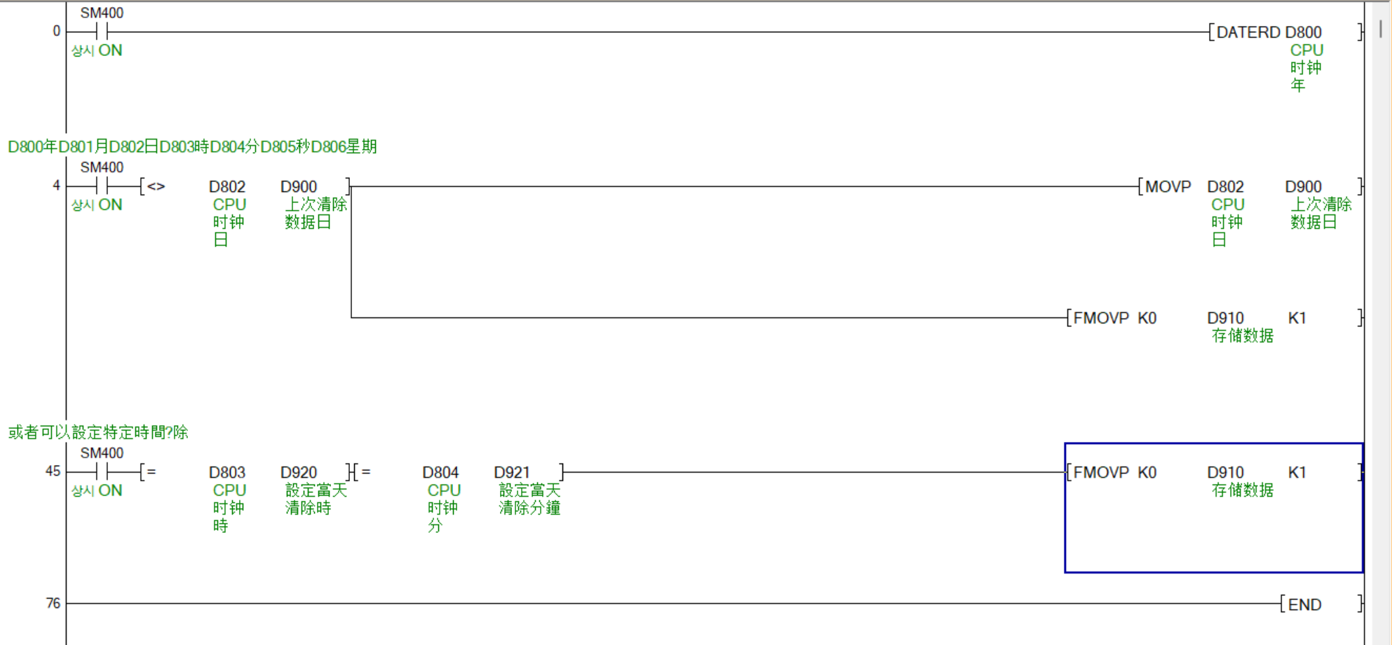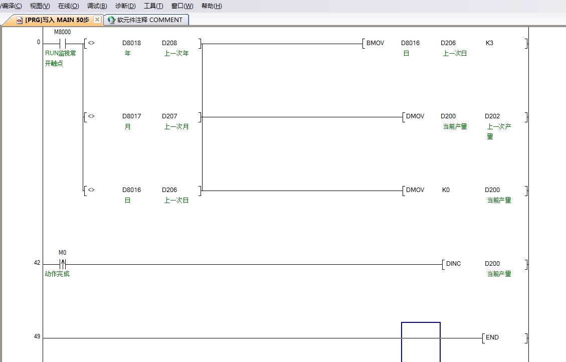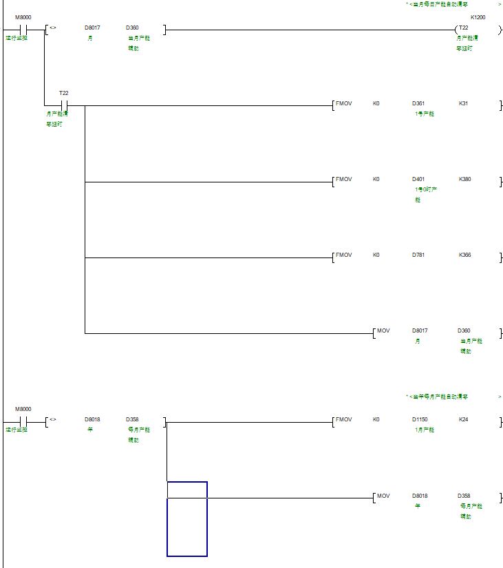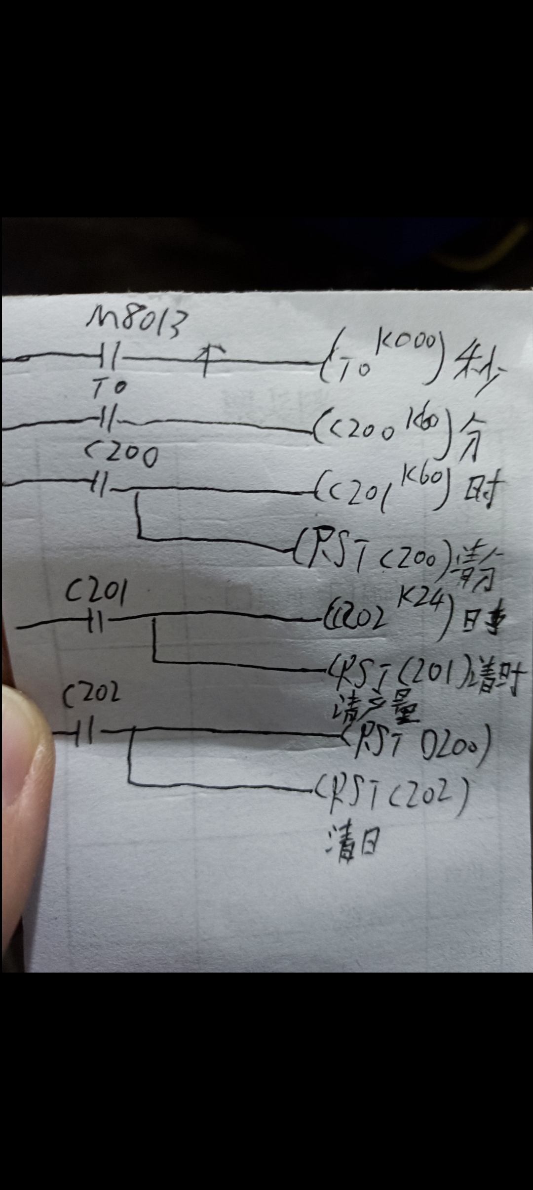 請問各位大佬,三菱plc如何計算今天產量,第二天自動清空。斷電保持