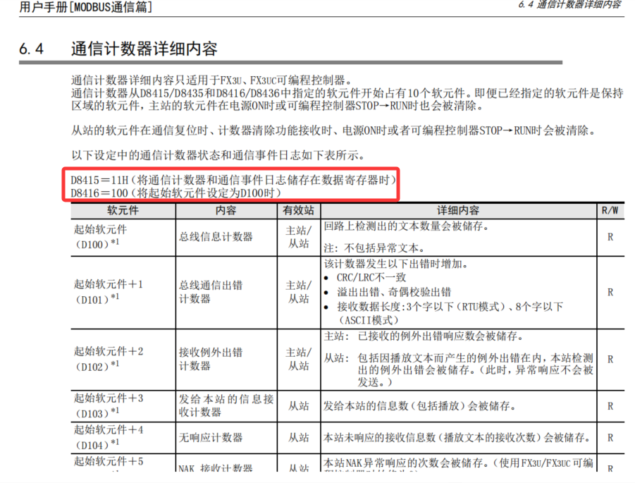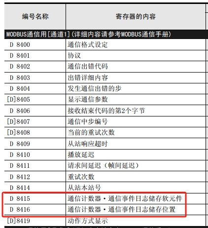 大神們好, 最近在學習FX 3U系列PLC的modbus通信,有個軟元件看不懂,望大神指點!感謝! 如下,看到說明書里有個設置通信程序,要設置D8415,D8416這2個軟原件,查資料是儲存通信事件日志的, 疑惑,這個存儲日志有啥用啊?啥時候能用上這個信息啊。 ![]() |