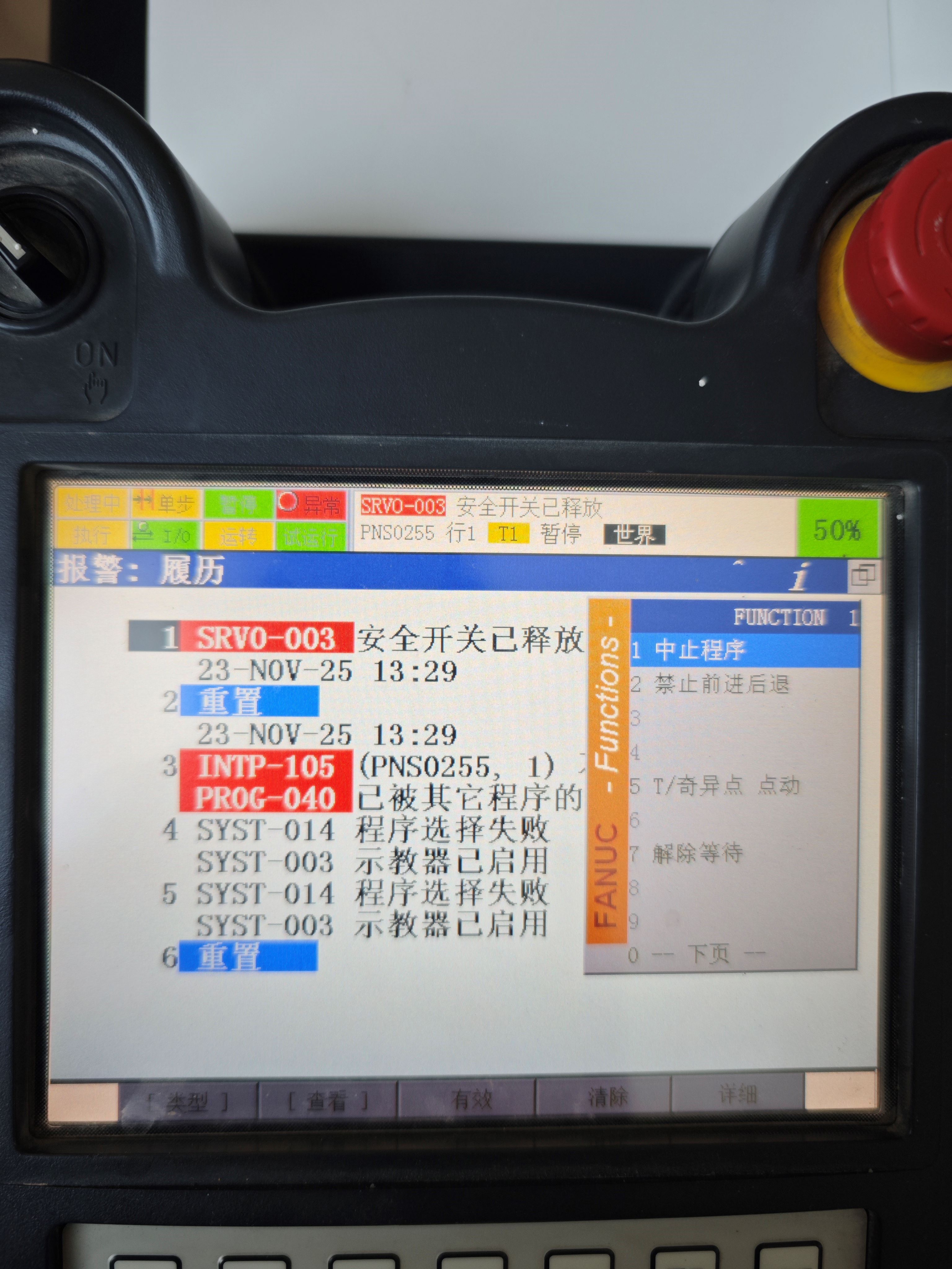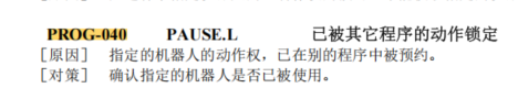 發那科機器人報警PROG-040,已被其它程序的動作鎖定,每次都要手動中止程序,有沒有辦法去掉這一步?