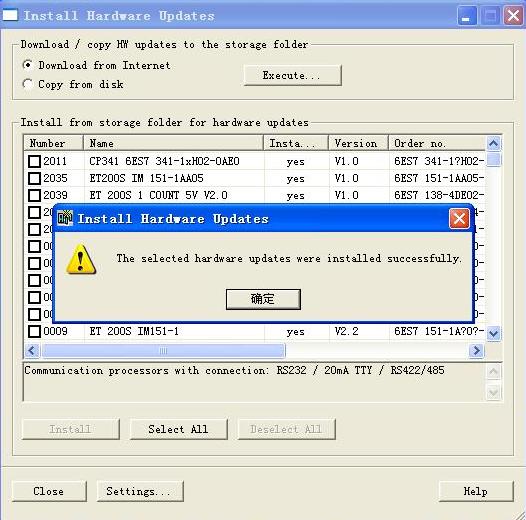 10.點擊“確定”,升級完成。所有硬件安裝完畢。重新打開STEP7軟件就可以組態了。