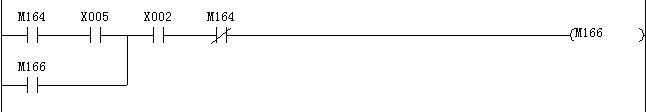 請問一下大家下面這個程序M166是怎么得電的? 是不是當X002 ,X005都吸合后, M164的下降沿觸發它的,如果是這種脈沖觸發的話,那后面應該加一個P的啊,怎么又沒看到呢? 另外M屬于控制器內部觸點,應該不存在斷開與吸合瞬間共存的現象啊,那他怎么能觸發M166,使M166得電呢?  迷糊。。。。 請問一下了各位的高手了。。。。。。。謝謝了!
