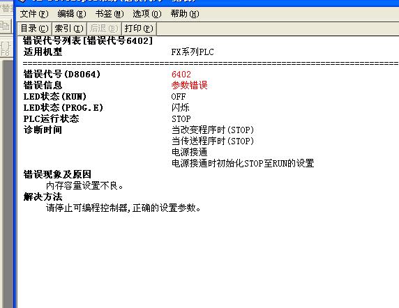 今天上午再開機,PLC故障LED指示燈就一直閃爍,用GOT,PC測試顯示M6402參數錯誤,再也不能開機.