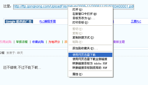 你的計算機要裝pdf瀏覽器,打開文件以后,用鼠標左鍵單擊左上角文件,選文件另存為,不就下載了嗎?(讓別人說你什么好呢?) ![]() [ 此帖被xp00在2009-05-23 06:41重新編輯 ] |