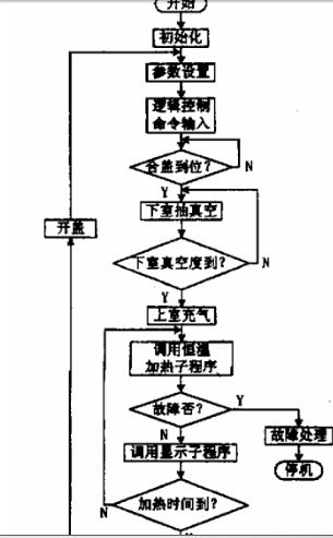 合蓋(手動)→上、下真空室同時抽真空→(抽真空計時器)計時器1開(2min后→上室充氣→下室抽真空→開始層壓→層壓計時器(計時器2)調壓計時器(計時器3)開→計時器3(2min)→上室充氣閥開→計時器2(5min)→上室抽真空(開)下室充氣(開)→上室充氣(關)下室抽真空(關)→下室壓力表為大氣壓→開蓋→開蓋到位,開蓋(關)→結束→繼續循環工作