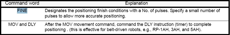 各位大大,能否幫小弟解答一下,是有關(guān)于三菱ROBOT的這三行程序,前面英文的批注我有查手冊解說了,如右所示,但是不太能夠了解,希望能有個(gè)范例解說一下下,另外就是那個(gè)FINE 0到底是什么意思,有些程序小弟也有看到FINE 200的...
