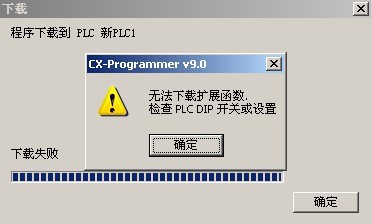 出錯為:無法下載擴展函數,檢查PLC DIP開關或參數