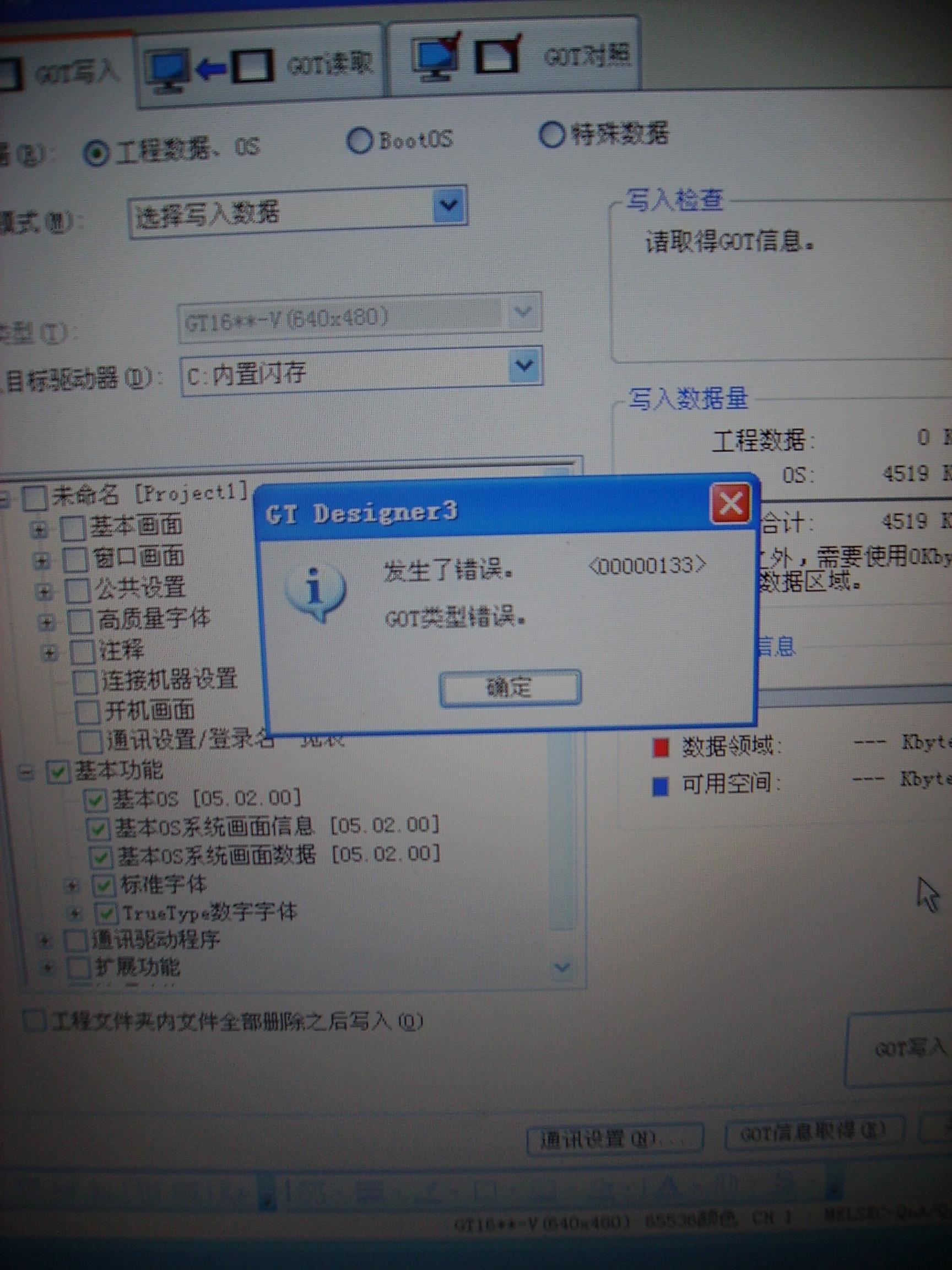 公司新買的GOOT,型號(hào):GT1662-VNBA,可是下載基本畫面時(shí),提示安裝基本0S,可在安裝基本OS時(shí),GT3為何報(bào)"GOT類型錯(cuò)誤"???
