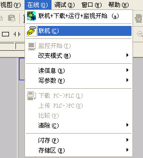 連接好通訊線,打開編程軟件,設置好通訊參數,新建對應型號PLC程序空白文檔,然后選擇聯機