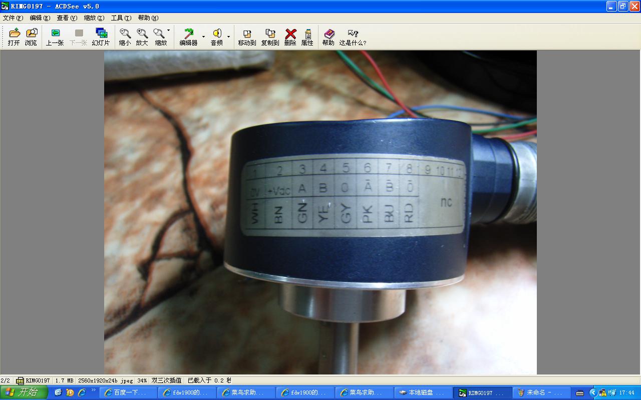 今天用一個2048線的增量型編碼器與F2N 三菱PLC做了個實驗,編碼器電源就接PLC地24V電源,A相接X0,B相接X1,用C252計數器計數,旋轉編碼器時,C252沒動作,就想拆下編碼器的線看下錯了沒有,沒想到剛拆下X1就是B相,計數器動了,愿來不用轉動編碼器,就用B相間斷接觸X1,計數器就動作,一直接觸不計,轉動編碼器也不計,那位大俠能告訴小弟原因,不勝感謝。B相接入X1,X1的燈一直亮,是不是編碼器有問題 ,新傳了圖, 高手進來指點下。