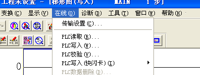 先將電腦與PLC聯機后點擊“在線”后續如圖片。