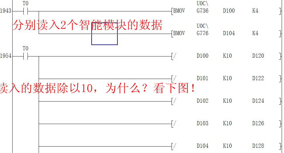 因為2個智能模塊分別占用了 1-4號站 和 10-14號站,所以PLC的讀取地址是2E0 2E1 2E2 2E3  和308 309 30A 30B,