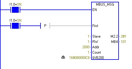 看手冊的地址是2000H,我用電腦的modbus調試軟件,傳2#10010給2000H,變頻器會正轉運行沒有問題。但是用PLC和變頻器modbus通信是,西門子的指令直接找不到從站2000的modbus地址,啟動MSG指令,后面直接報錯。提示:從站不支持在該地址處所請求的功能:請參閱"使用Modbus主設備指令"幫助主題中的所需Modbus從站功能支持表。
