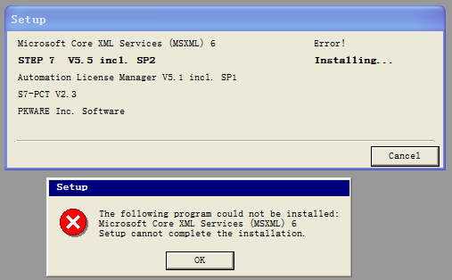 安裝STEP7 V5.5時,出現(xiàn)這個錯誤,(Microsoft core XML Services(MSXML)6 ERROR .重裝了系統(tǒng)還是不行,哪位高人知道原因,幫助解決一下。謝謝了。