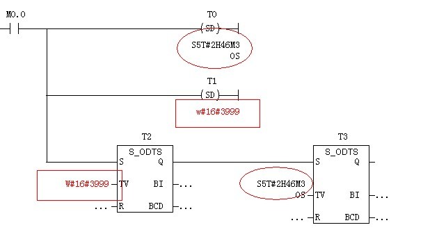W#16#3999 后999代表設(shè)定值999,為BCD碼,前面?zhèn)3代表時基,其就是S5time格式,雖然S5time的格式就是這個樣子的,不代表你可以直接使用,因?yàn)槎〞r器無法確定你輸入的是999設(shè)定值還是是3999這個值。