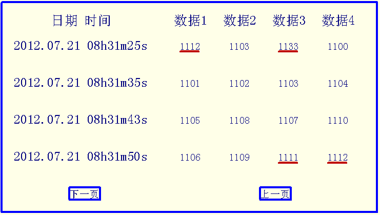 能做出如附件圖示的帶不合格參數標識的歷史測試數據界面嗎?