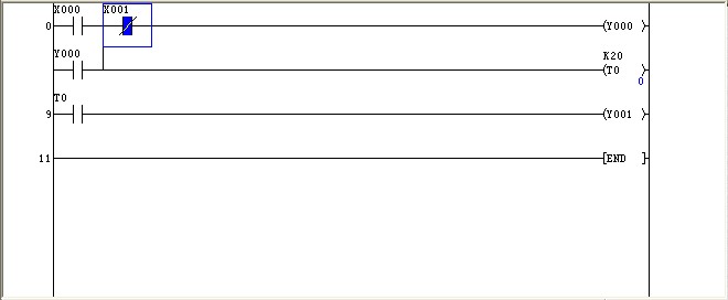 按下X0啟動Y0同時T0延時計時。。。計時到達接通Y1。。。