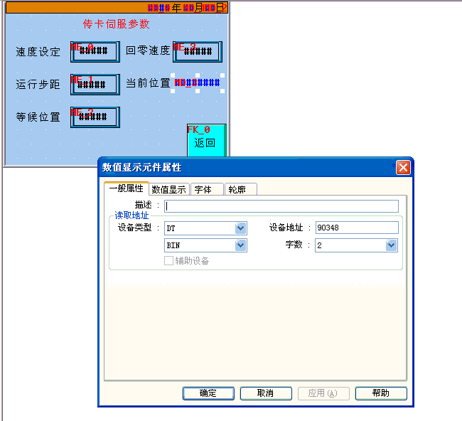 做個“數(shù)值顯示”的控件   來顯示伺服當前脈沖的值 。