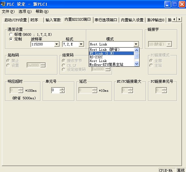 現在問題是CP1E-NA20DR-A只有一個通訊口,不能增加其他通訊板了。那個9針的通訊口好像是內置232的了,不能改485了,能不能買一個232轉485模塊插上去,兩臺PLC連在一起然后連到觸摸屏COM1??PLC里要如何設置?通訊模式和站號之類的?求大神指點!!謝謝