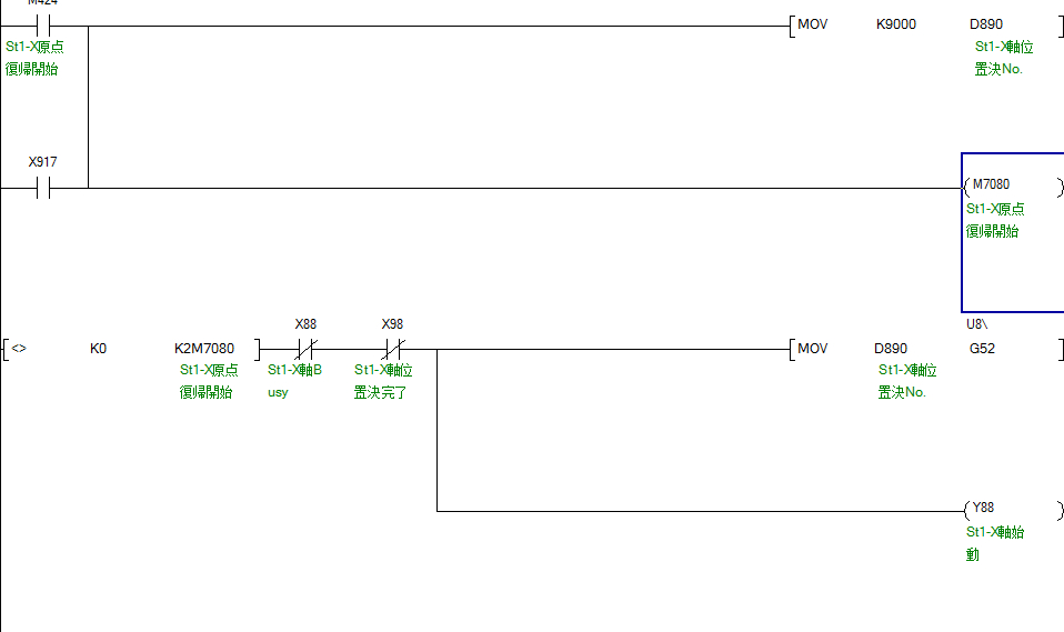 各位朋友,三菱Q01+QD70P8怎么回原點啊,如附件中程序。按照QD70P8里那段程序寫,回原點沒反應。接線肯定沒問題的,因為手動都動起來了。OPR參數先前也設置好了的。